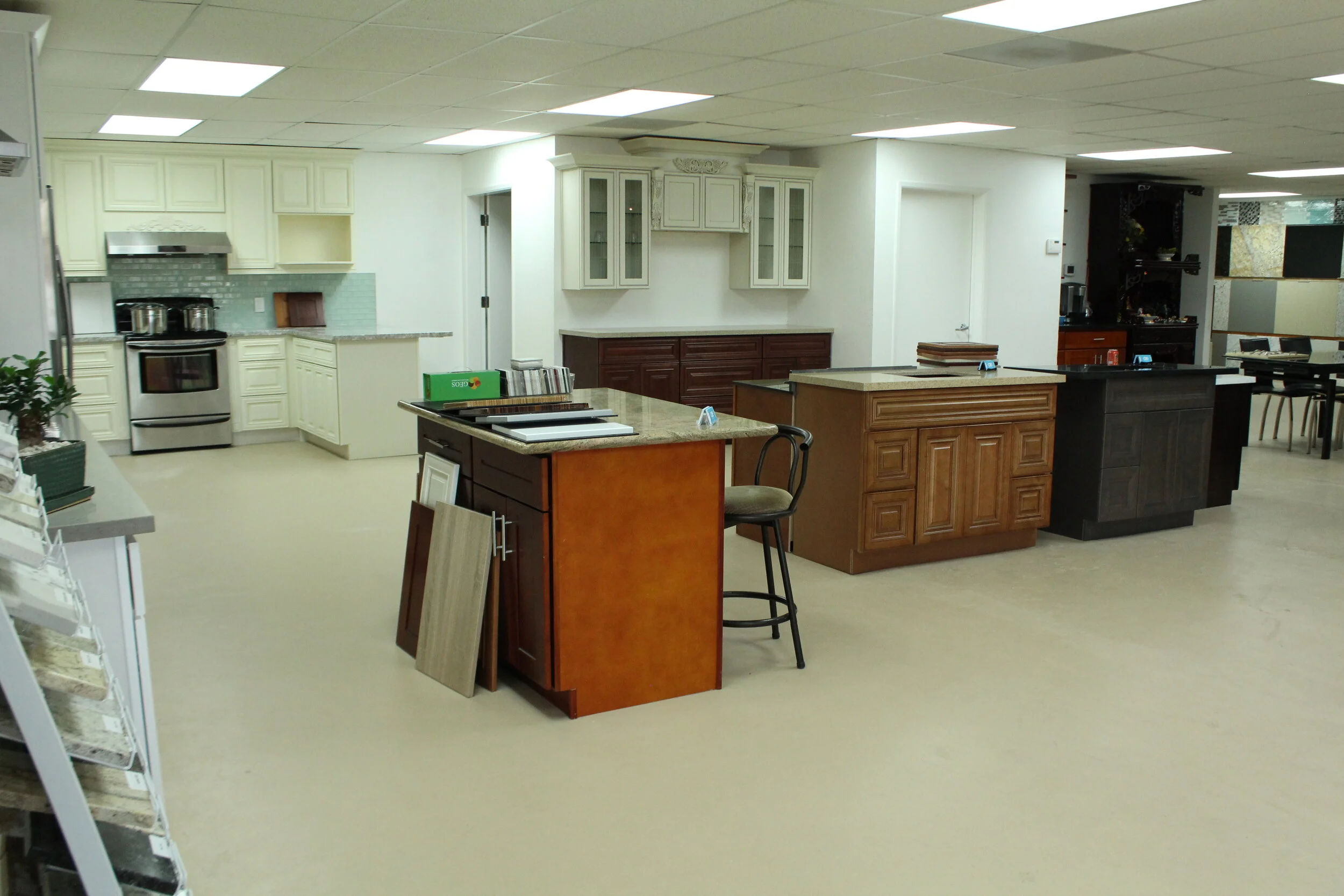 We’re situated in south San Jose. With the latest trends and materials, we have everything you need to remodel a kitchen, bathroom, or even a house. We are only able to house some of our materials at our showroom. Since we work with many of the major tile and countertop suppliers in the Bay Area, our inventory is actually a lot bigger than what we have in inventory. If you’re ever looking for anything specific, please don’t hesitate to ask. We’re more than happy to assist you.
